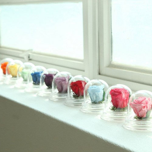 THE VOM (더봄) 프리저브드 플라워 – 아크릴돔 장미, 바이올렛+안개꽃