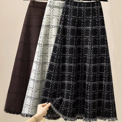 나바바 NS082 여성 치마 격자골지 니트 롱 스커트