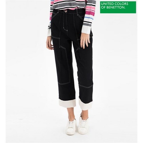 베네통 캐주얼 롤업 데님 팬츠 BADP11841 BK
