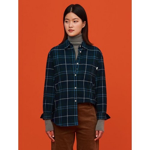 빈폴레이디스 [GREEN BEANPOLE] 네이비 브러시드 코튼 루즈핏 체크 셔츠 (BF0964N05R)