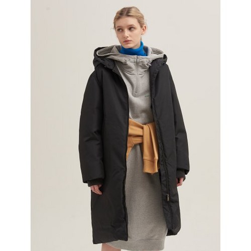 빈폴레이디스 [GREEN BEANPOLE] 블랙 솔리드 플레인 후드 롱 다운 점퍼 (BF9X38N025)