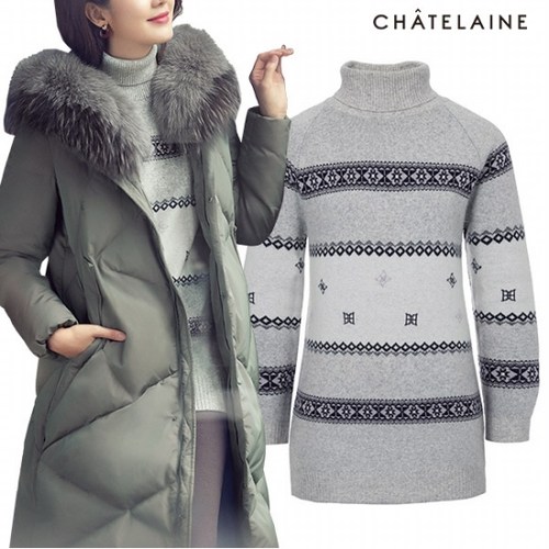 샤트렌 2019 겨울 샤트렌 노르딕 패턴 롱 폴라 니트