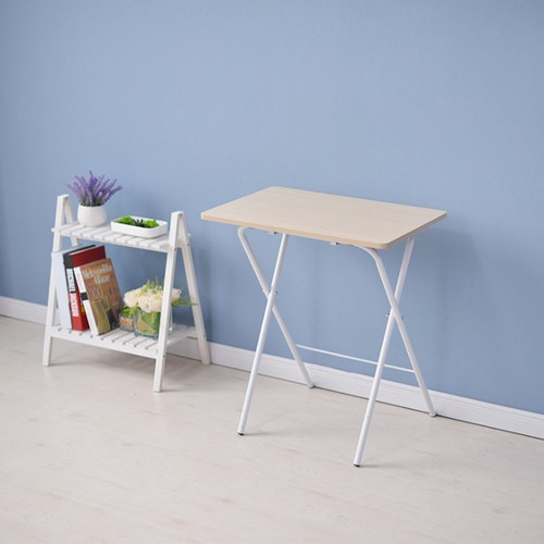 소프시스 튜브 접이식 책상 선반형 863, 티크판넬 + 화이트프레임