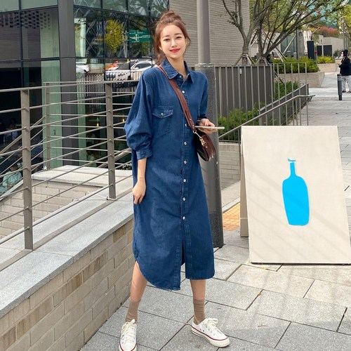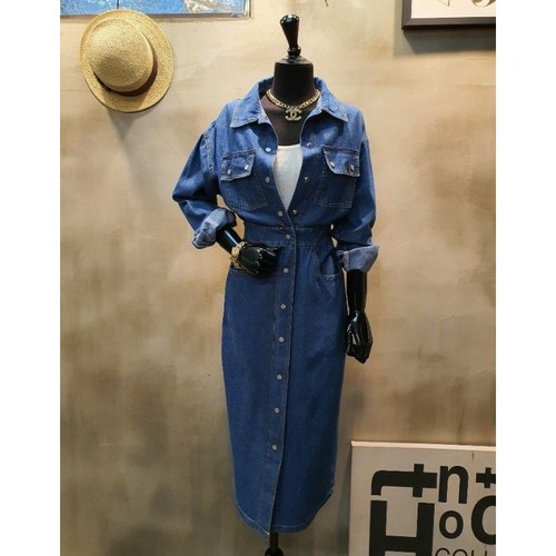 메리바움 95560 피트 데님 셔츠 롱 원피스 여성 가을 청원피스 20대