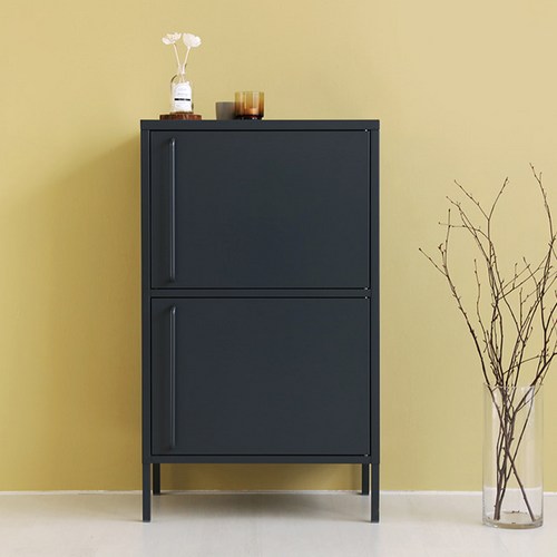 마켓비 PIDOR 캐비넷 모던세로 2문 수납장 6001015, 다크그레이