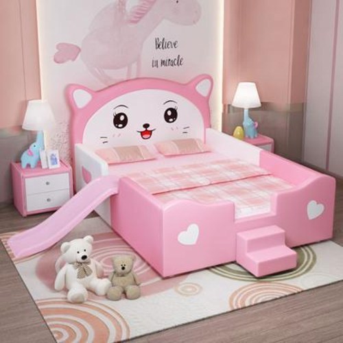 키즈침대 걸스 가드레일 1인용 핑크 캐릭터 미끄럼틀 베이비 이음매 없는 원목 어린이침대 벙커 침대, 01 가지고 있지 않다, 01 홑침대(보행다리)