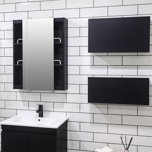 모카 전면 거울 슬라이드 도어 욕실 수납장(600X800), 블랙, 1개