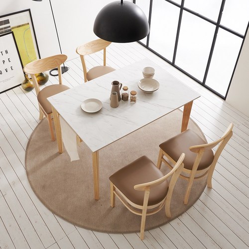 보니애가구 엘리슨 13.5T 화이트 통세라믹 4인용 식탁세트, 테이블 단품, 네츄럴