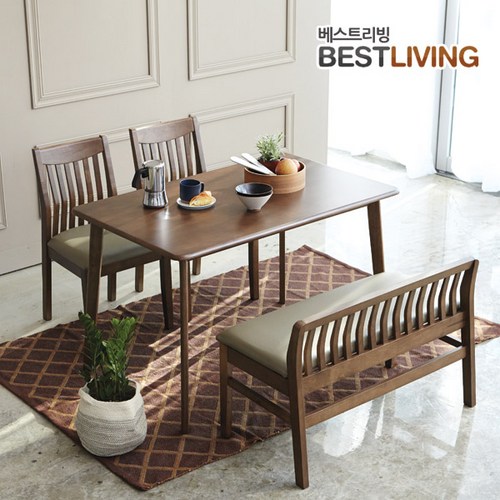 베스트리빙 아마존베스트 특별한분을 위한 특별한 가구!! 깔끔한 디자인이 돋보이는 캔버라 제시4인식탁세트(벤치형) 식탁세트, 월넛