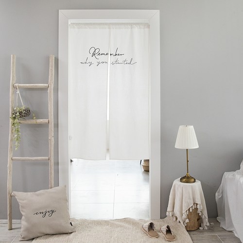데코뷰 러브타이포 자수 바람막이 현관 커튼, 화이트