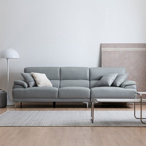 스칸디나 가죽 4인용 소파 + 쿠션 2p + 스툴 방문설치, 민트그레이