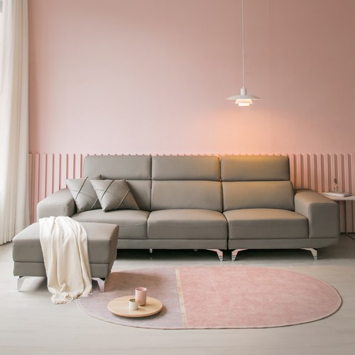 스칸디나 가죽 4인용 소파 + 쿠션 2p + 스툴 방문설치, 다크그레이