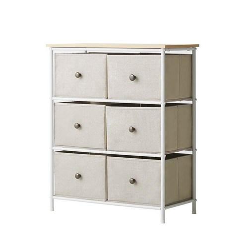 블루밍홈 3단 패브릭 서랍장, 화이트 + 그레이