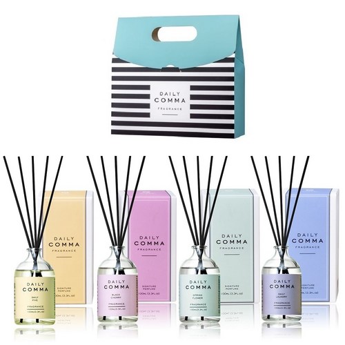 데일리콤마 디퓨저 마린백 디퓨저 100ml x 4종 + 섬유스틱 20p + 마린백 선물세트, 데일리파이브 + 블랙체리 + 스프링플라워 + 데일리런드리