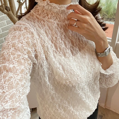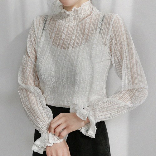 스타일대박 하이넥 프릴 이너 시스루 레이스 블라우스