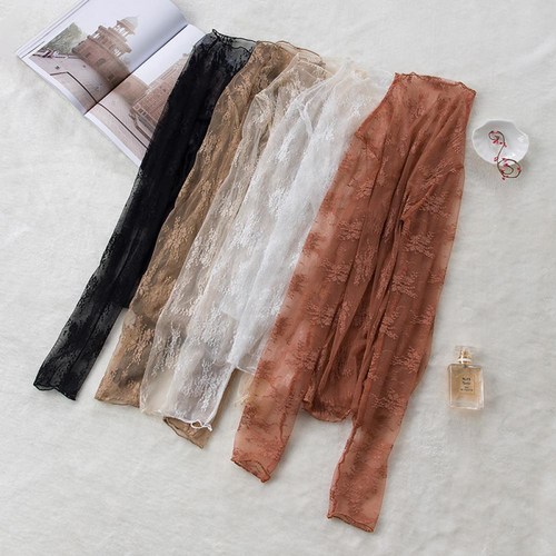 레이스 이너 셔츠 여성 겨울 가을 스웨터 이너웨어 블라우스 긴 소매 꽃자수 쇼트 망사 상의