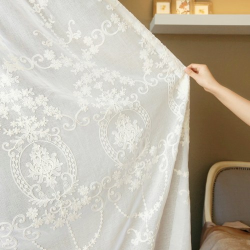북유럽 린넨 라벤더 자수 커튼 봄 사계절 거실 창문 가리개