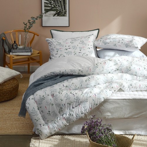 플로라 라벤더 플라워 모달코튼 차렵이불 베개커버 세트, 화이트