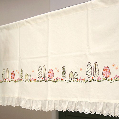우리앤데코 팜트리 자수 레이스 바란스커튼, 화이트