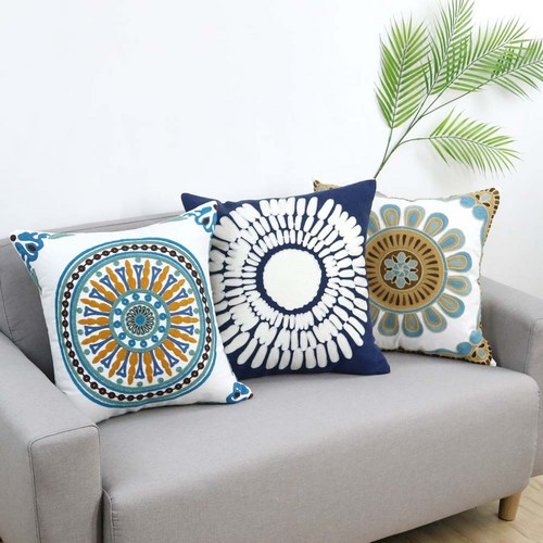 ONSUM 꽃 자수 쿠션 북유럽 쇼파 인테리어 쿠션커버 쿠션솜포함 세트, 써클 블루3-1(커버/솜포함)