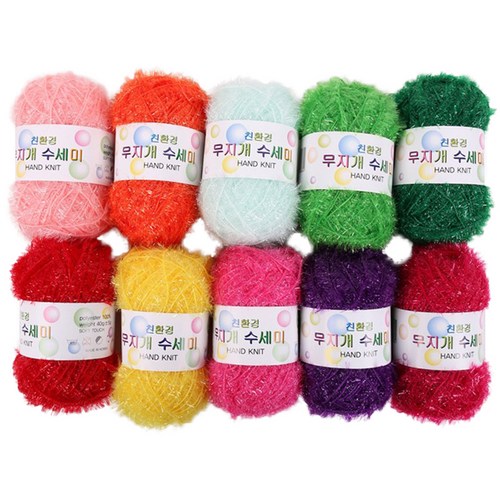 마마니트 레인보우 수세미실 10종 A세트 뜨개실, 화이트, 노랑, 연핑크, 파스텔민트, 피치, 파스텔보라, 진핑크, 코발트블루, 연두, 레드
