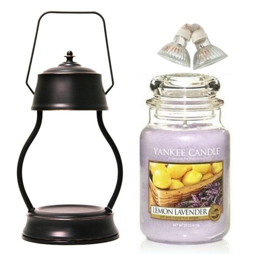 양키캔들 라지자 캔들 레몬라벤더 + 퓨어 캔들워머 + 전구 2p 세트, 블랙