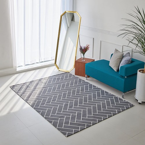 이니띠움 헤링본 패턴 방수 러그 사각 카페트, 차콜