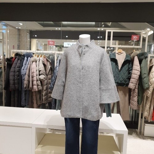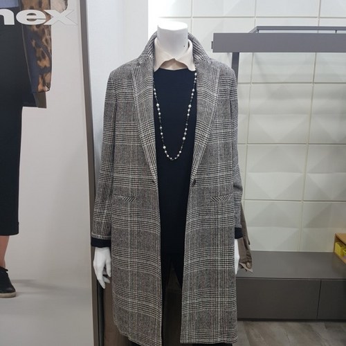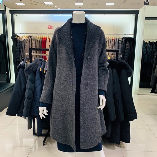 요하넥스 카라배색 에이라인 하프코트(그레이)