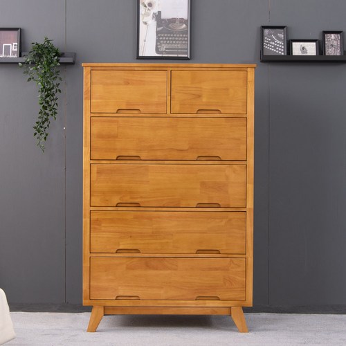 브라솔 해리 고무나무 원목 광폭 수납 5단 서랍장, 오크