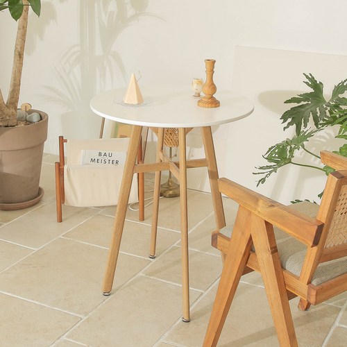 신화리빙 티테이블 원형테이블, 화이트 밤부 티테이블 600