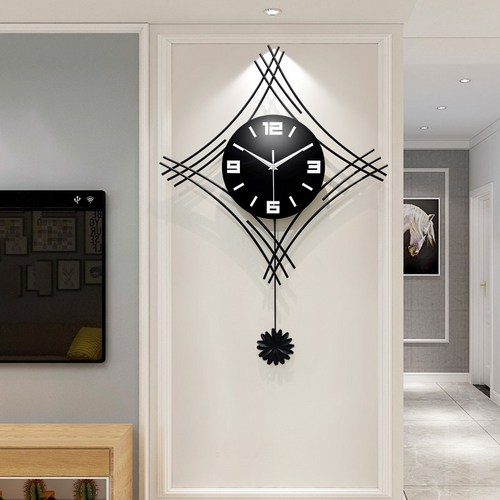 북유럽 무소음 인테리어 벽시계 인테리어 소품 집들이 선물, 심플 블랙 73x 48cm