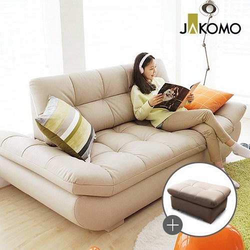 자코모 버블리 3인 천연면피 소가죽소파+스툴, 크림아이보리