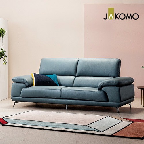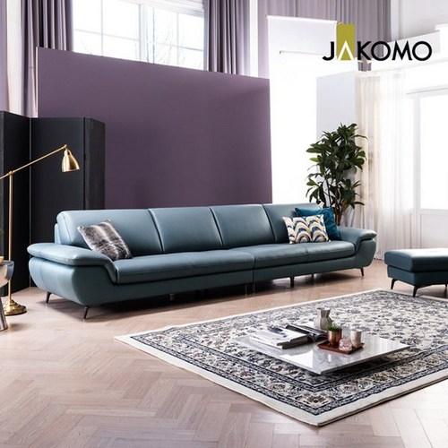 자코모 트레뷰 6인 천연면피 소가죽 소파+스툴, 미스티블루/높은세틴블랙다리