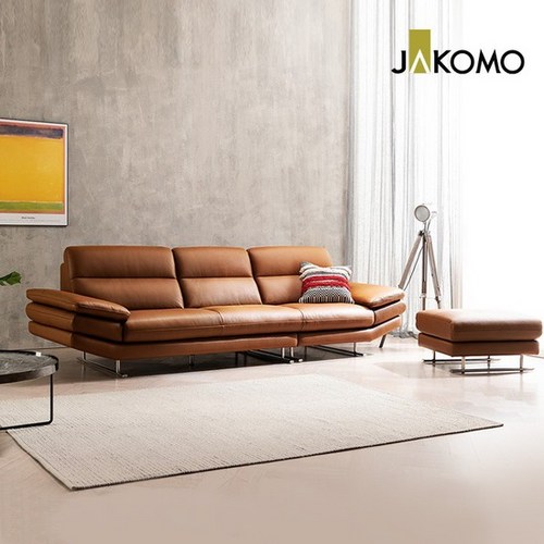 자코모 디체 4인 천연면피 소가죽 소파+스툴, 모카