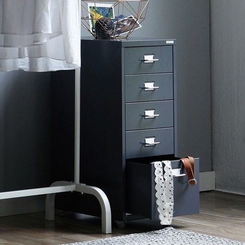 포더홈 이든 철제 책상 책장 서랍장, 4] 이동식 4단 서랍장_오크