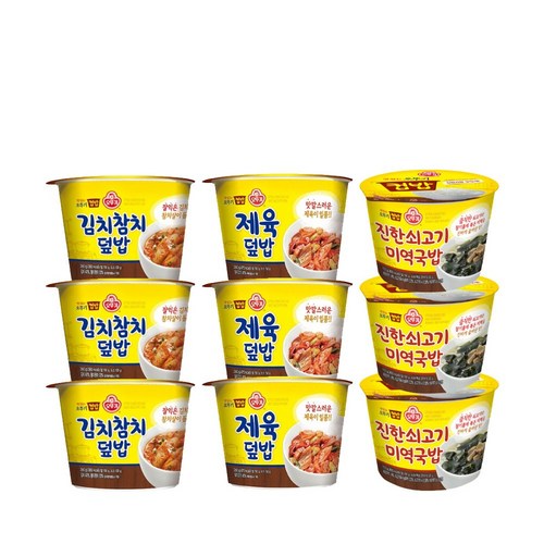 선물)오뚜기컵밥 김치참치3입+제육덮밥3입+쇠고기미역국밥3입, 선물)오뚜기컵밥 김치참치3입+제육덮밥3입+미역국밥3입