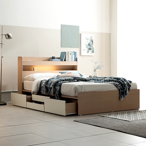 삼익가구 브린디 LED 빅서랍 4단 수납침대 + 매트리스 방문설치, 오크+화이트