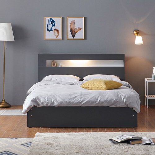 그레이스 LED 일반형 퀸 침대 Q+본넬 매트리스+방수커버, 그레이