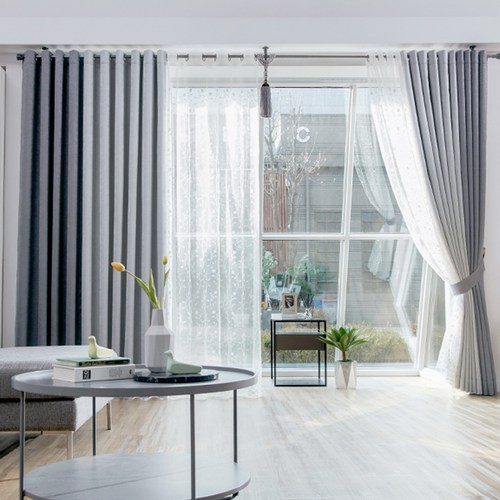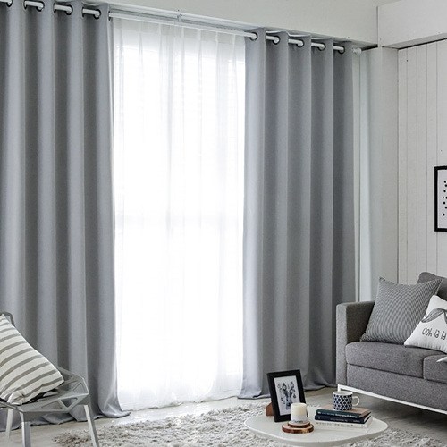 리앤룸 솔리드 암막커튼 2p + 라이프 긴창 커튼 2p, 연그레이