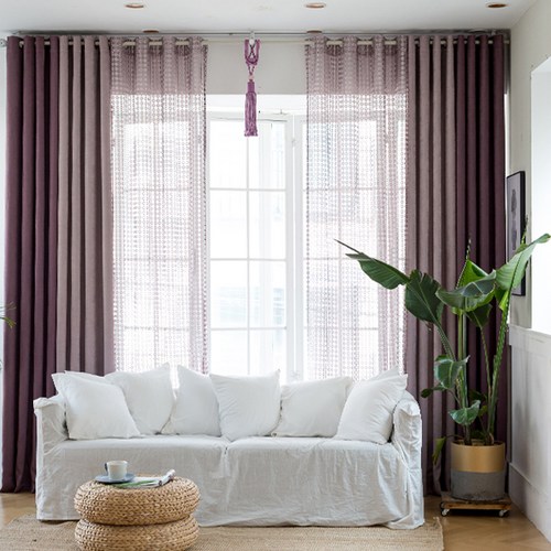 미룸 암막커튼 + 커튼봉 + 부자재 풀세트, 퍼플투톤