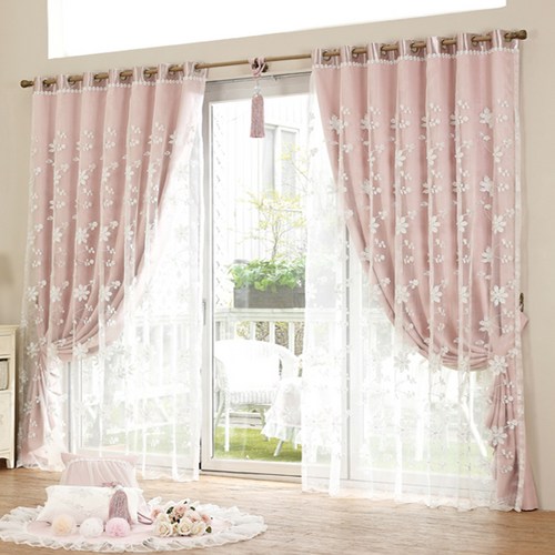 지나송 선샤인 아일렛 이중 암막커튼 세트, 핑크