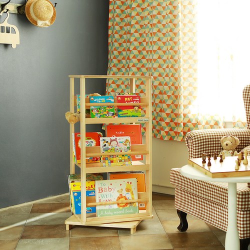 고급 원목 회전 책장 북타워 책꽂이 슬림 코너 조립식 전면 책장 아기방꾸미기 아이방 인테리어 슬라이딩 진열장 책진열장 키즈 어린이 아동 책장, 마호가니화이트3단