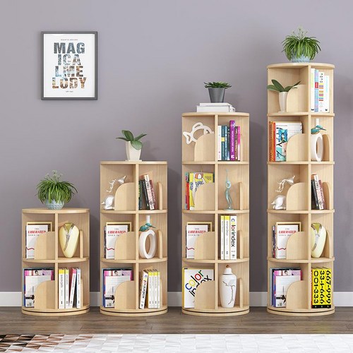 회전책장 책꽂이단단한 나무 회전 책장 선반 360도 간단한 작은 책장 원목회전책장, 1 층 직경 46cm