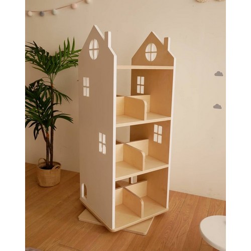 고급 원목 회전 책장 북타워 책꽂이 슬림 코너 조립식 전면 책장 아기방꾸미기 아이방 인테리어 슬라이딩 진열장 책진열장 키즈 어린이 아동 책장, 마호가니화이트3단