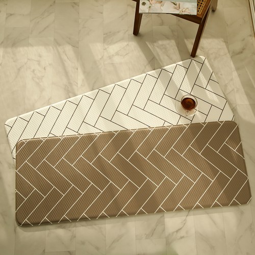 코멧 헤링본 양면 쿠션 주방매트, 아이보리+라이트브라운(M)
