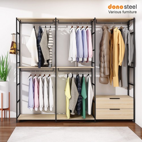도노스틸 올리카 시스템연결옷장 6단3칸 서랍세트 드레스룸, A1. 옷장 6단3칸 (2행거+2행거+서랍)-도노오크