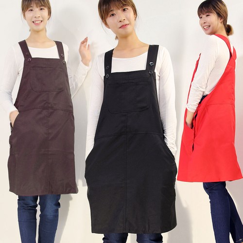 하랑이플 멜빵 원피스형 앞치마 바리스타 주방앞치마, 멜빵원피스앞치마(브라운)