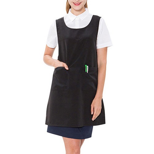 클린유니폼 주방 공방 카페 식당 방수 바리스타 서빙용 단체 행사 기본 민자 미용실 원피스형 앞치마 5색상, 블랙