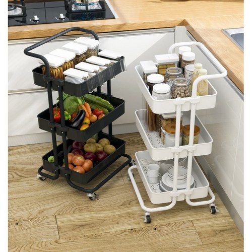 이동식 트롤리 이케아 주방 미용실 카트 웨건 국민기저귀 정리대 3단카트 정리함, 블랙