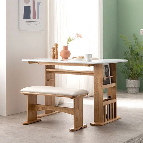 [삼익가구]에디션 트랜스폼 확장형 식탁 테이블(벤치1개포함), 화이트